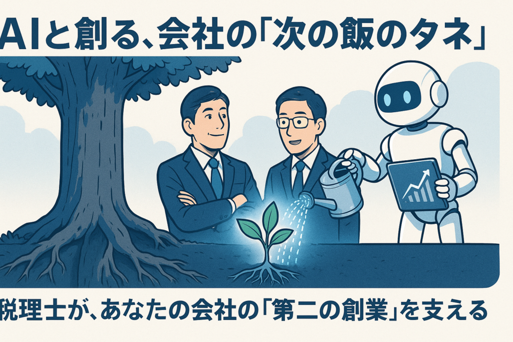 私たち**税理士**は、その新しい挑戦が財務的に成り立つのかを厳しくチェックし、成功確率を最大化する計画を共に練り上げるパートナーです。**AI**という最新の武器を手に、あなたの会社の「第二の創業」をご一緒できることを、心から楽しみにしています。