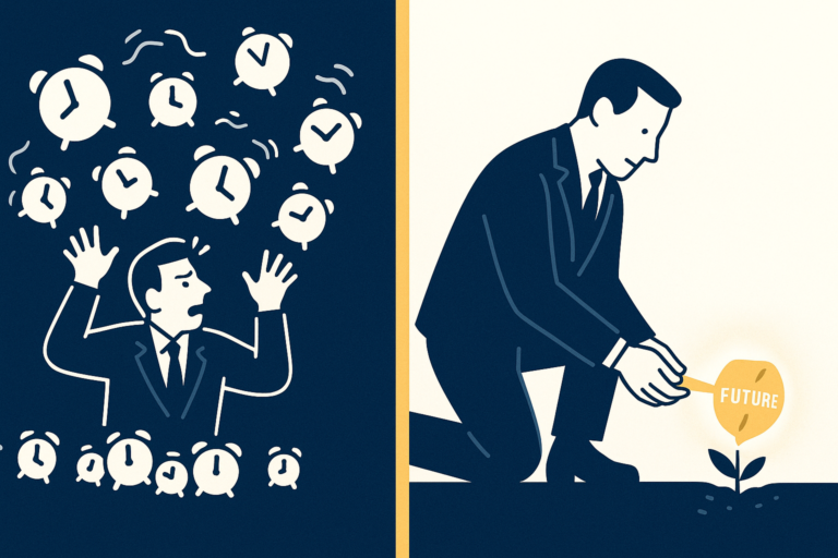 なぜ、社長のあなたはいつも「時間がない」のか?日々の雑務に追われ、本当に重要な仕事ができない悩みを解決します。会社の未来を創る時間を強制的に捻出するための、3つの具体的な鉄則を、ワークと共に解説します。